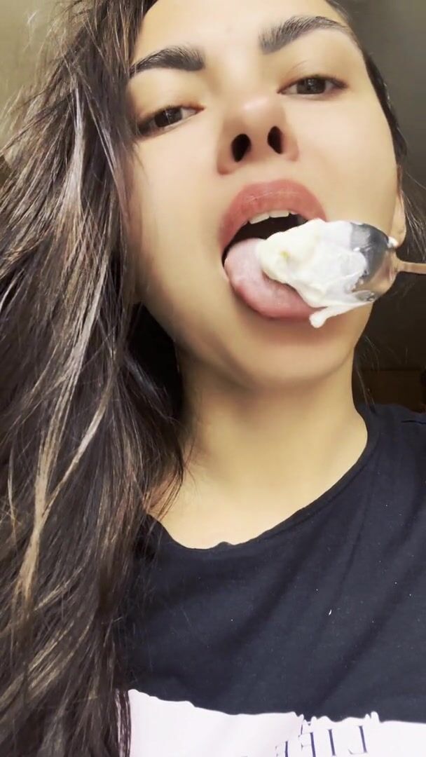 I eat cream. Juicy lips