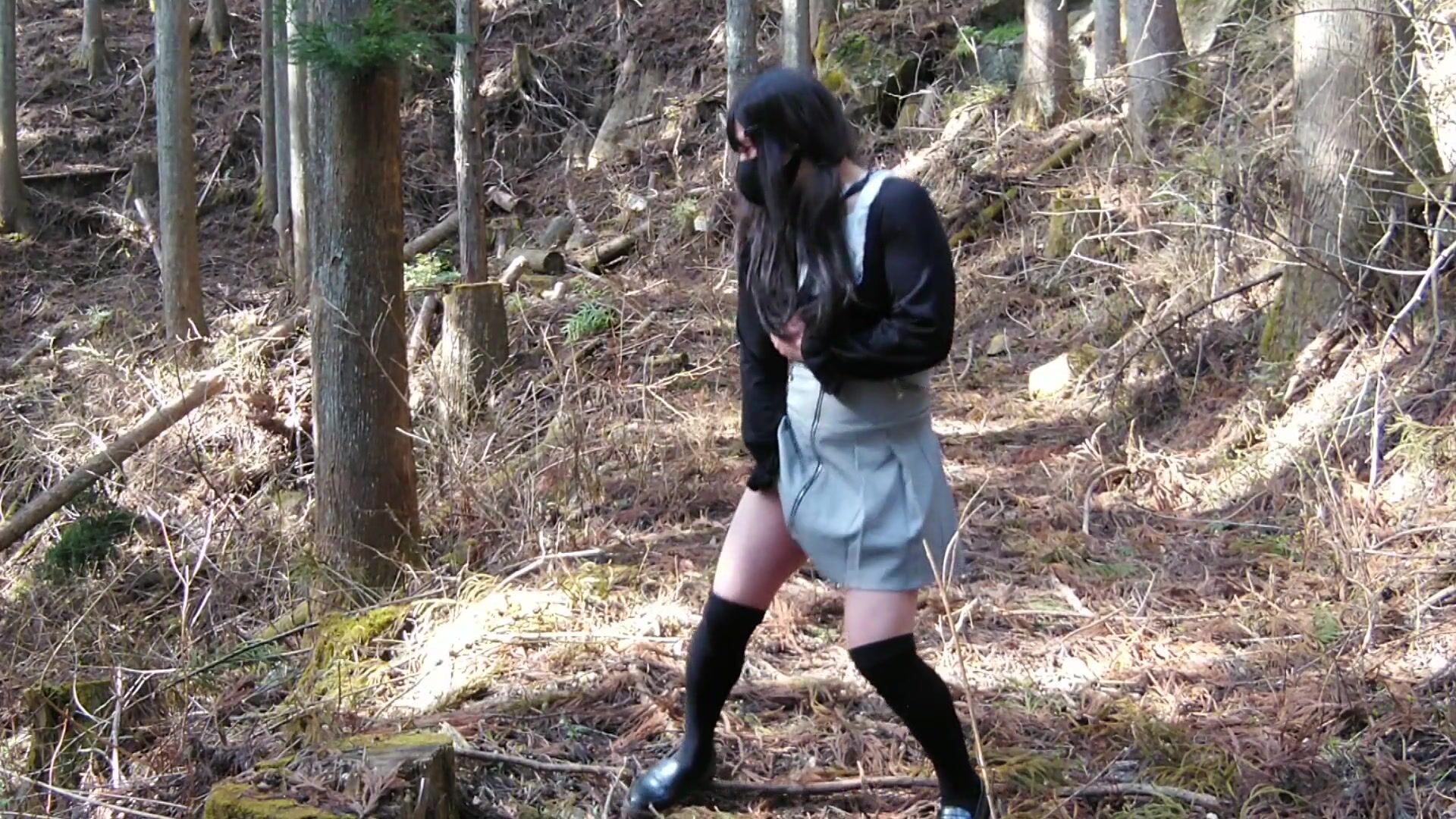 Cute exposed masturbation ejaculation in the backcountry of nature