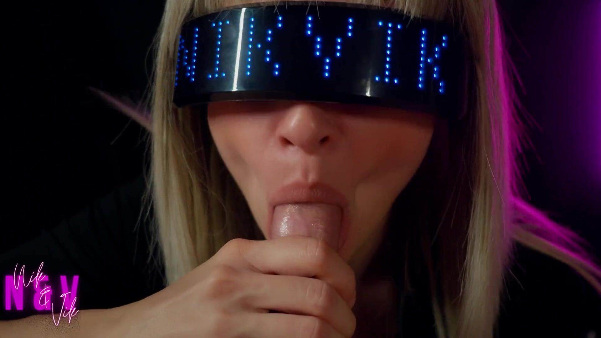 Сyberpunk girl greedily sucks all the cum out of her fan