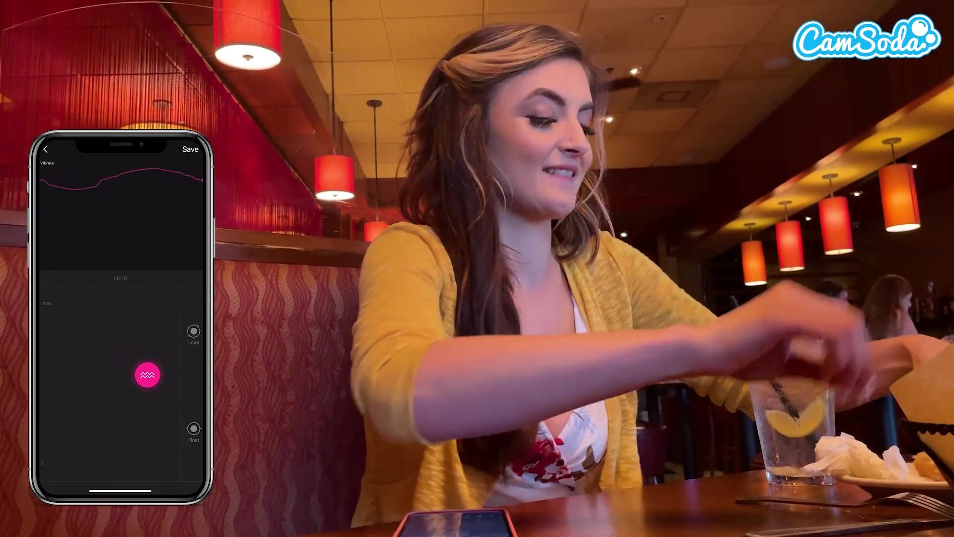 Cumming in Public with interactive toy at LUNCH! Public female orgasm interactive toy