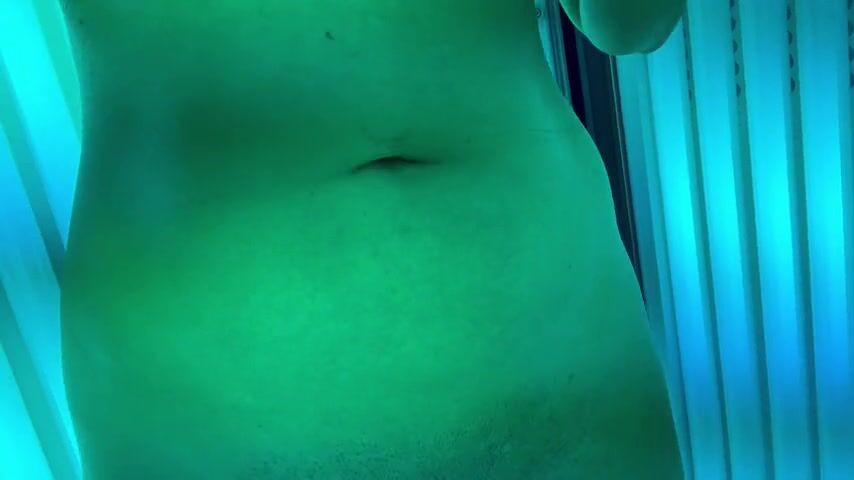 Gym girl fingers herself in tanning bed