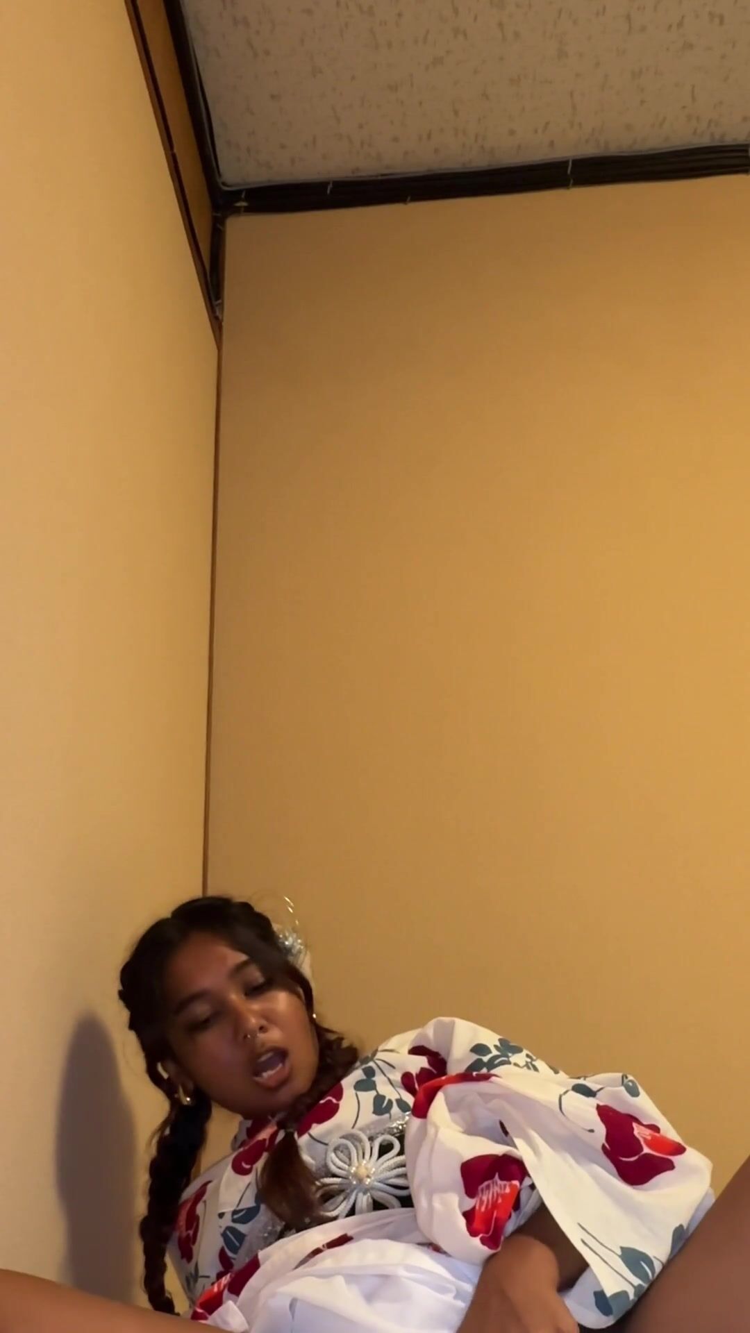 Horny petite desi masturbating in a kimono