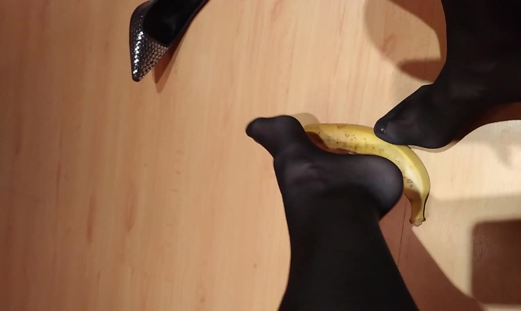 banana foot job, feet, toe sucking banana in toes topless