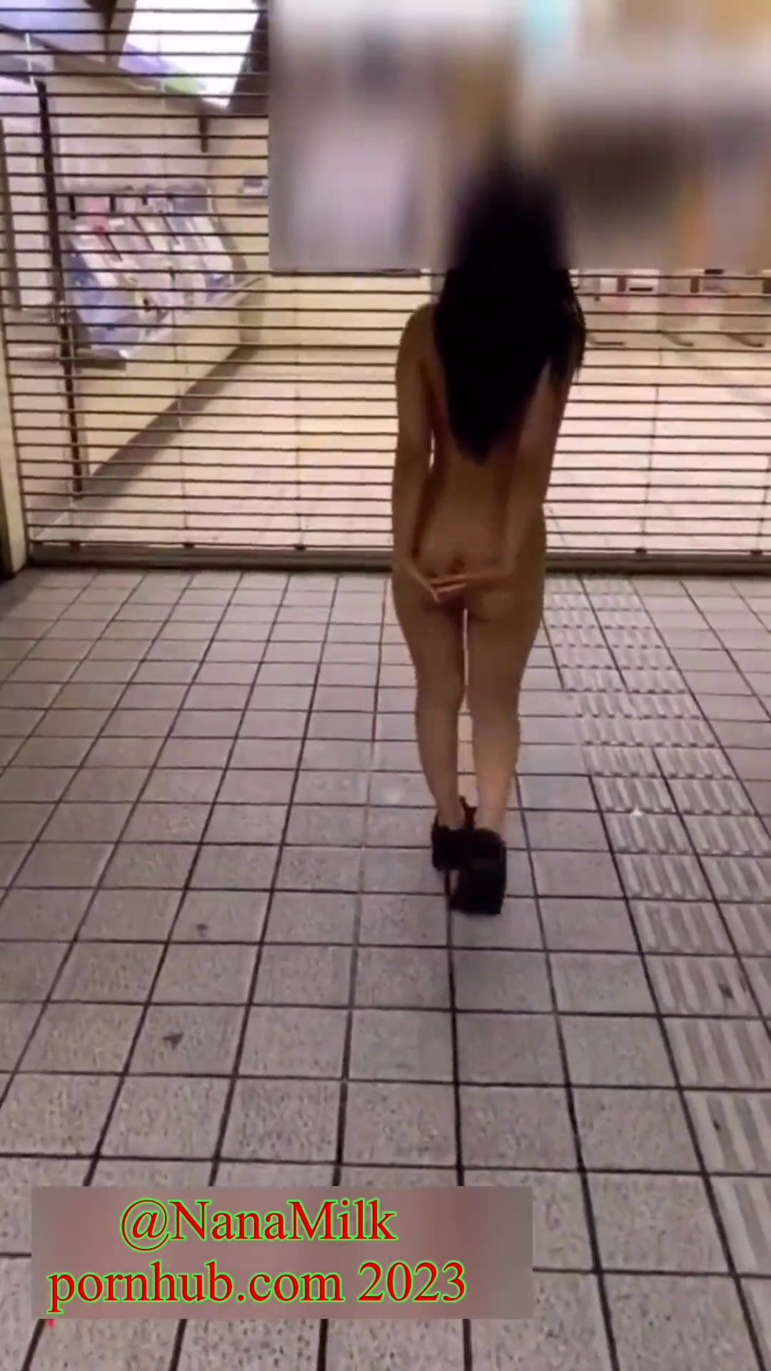 NANA's shaved pussy outdoors exposed in front of the station