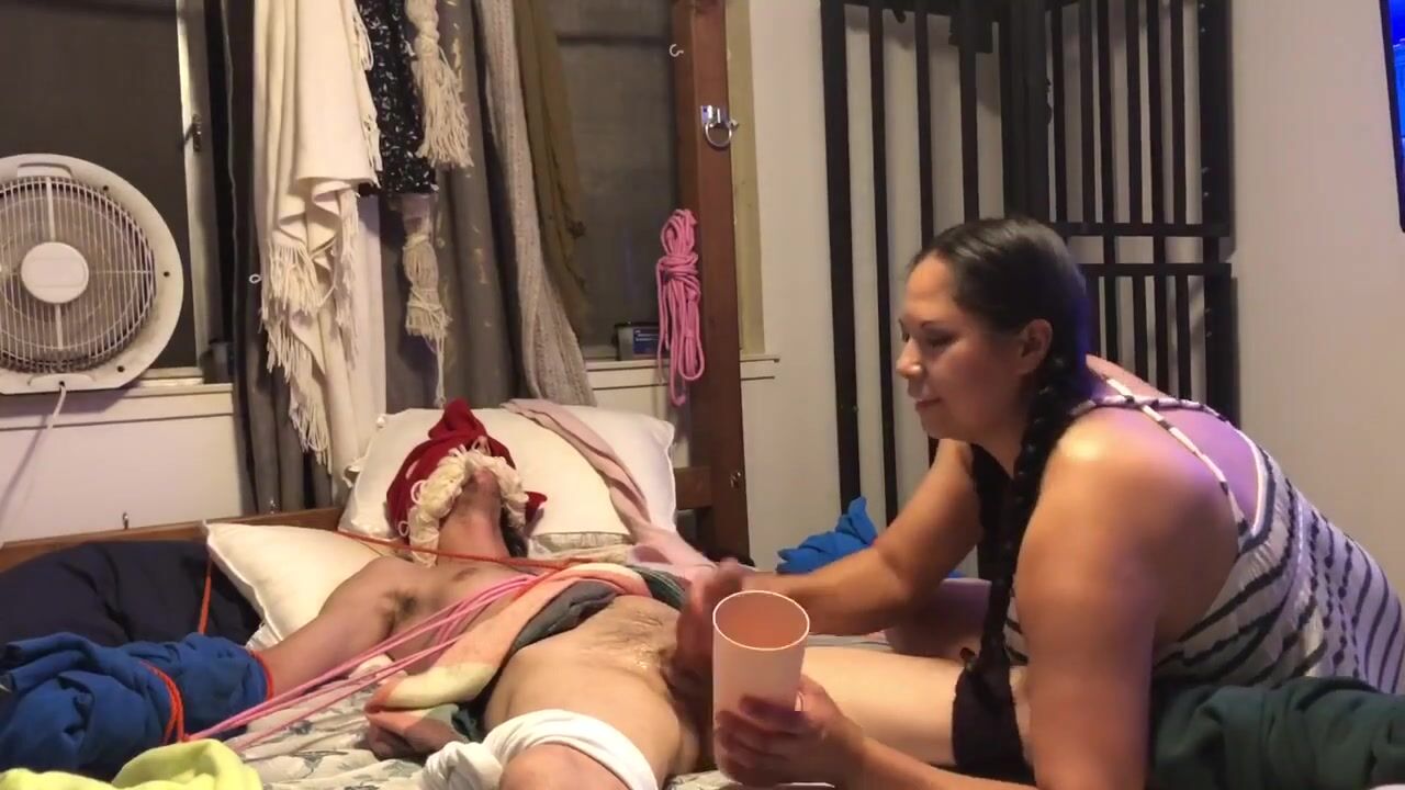Amateur Femdom CFNM Edging Handjob. Waxed his Bound Balls. Triple Ruined Orgasm. Post Orgasm Torture