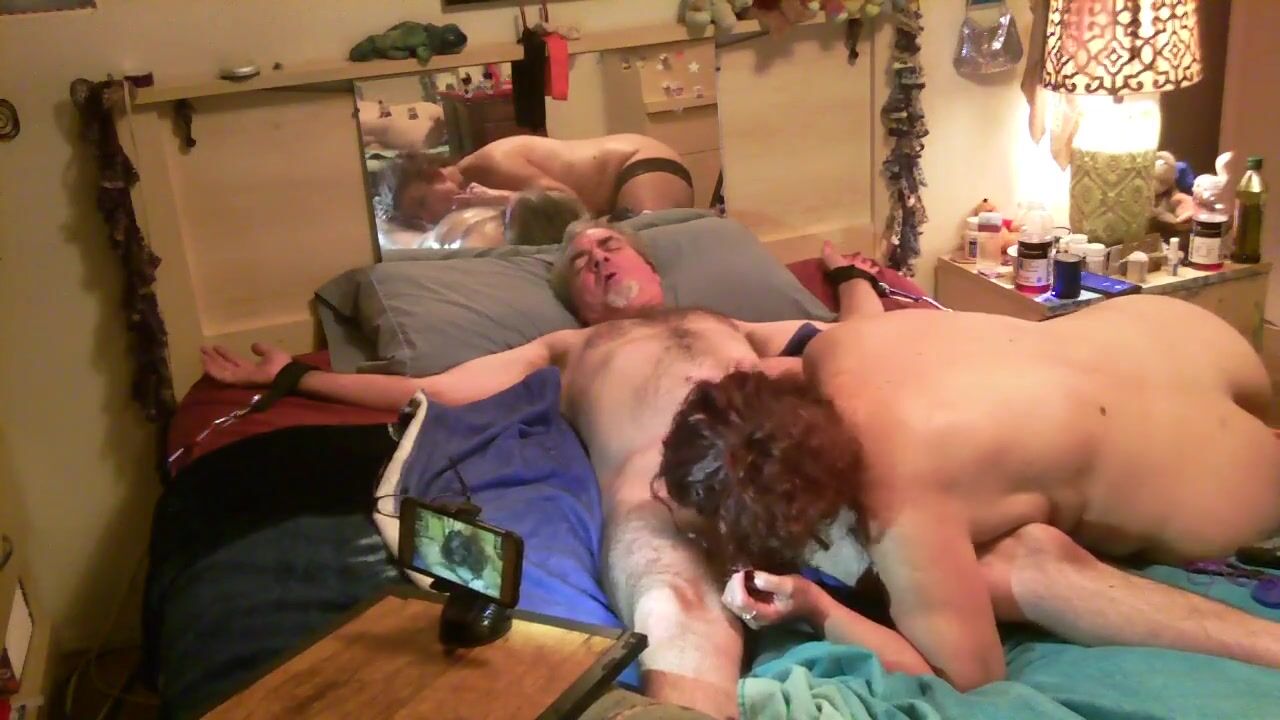 Sub has screaming orgasm riding tied down master