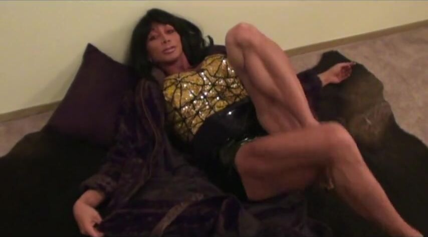 Sexy fit muscle godess in tight dress flexing ripped body