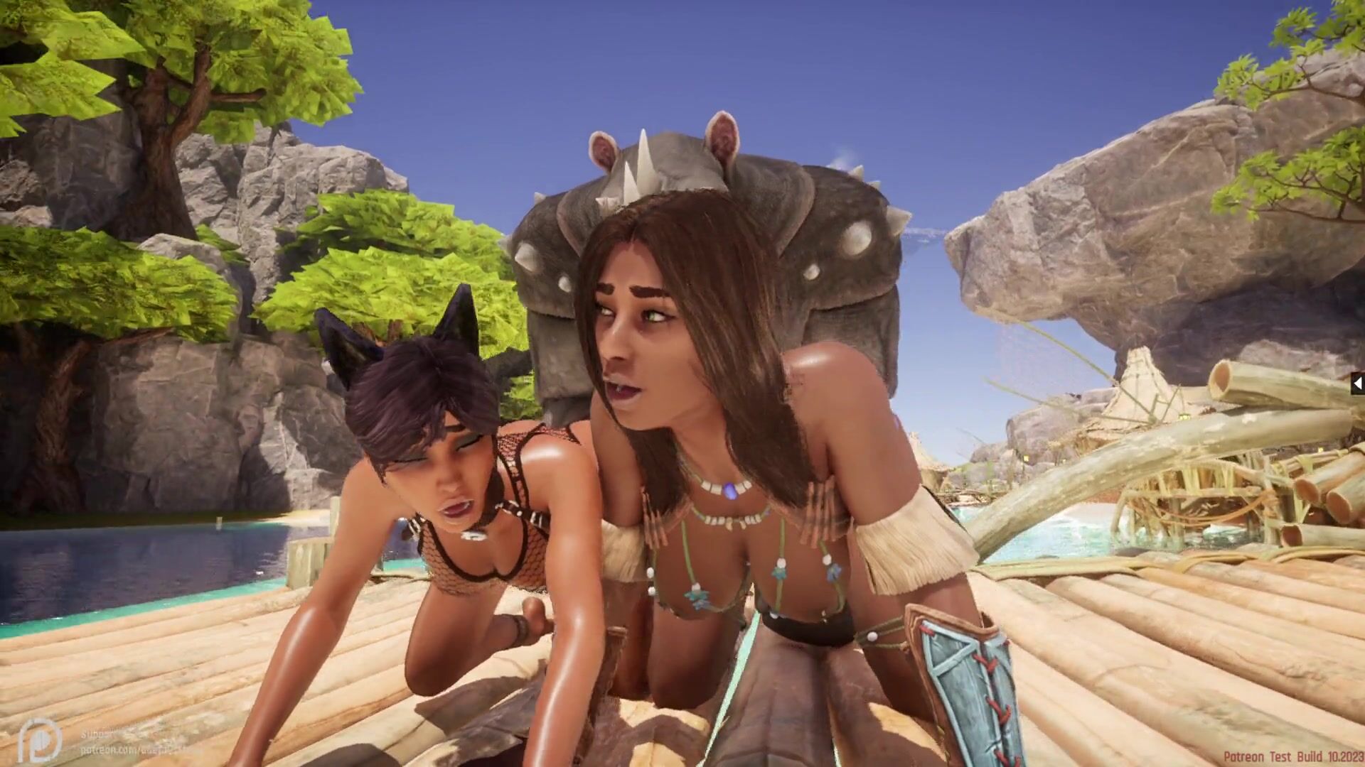 WildLife - Jadeen and Maya fucking with a Rhino - Furry Hentai