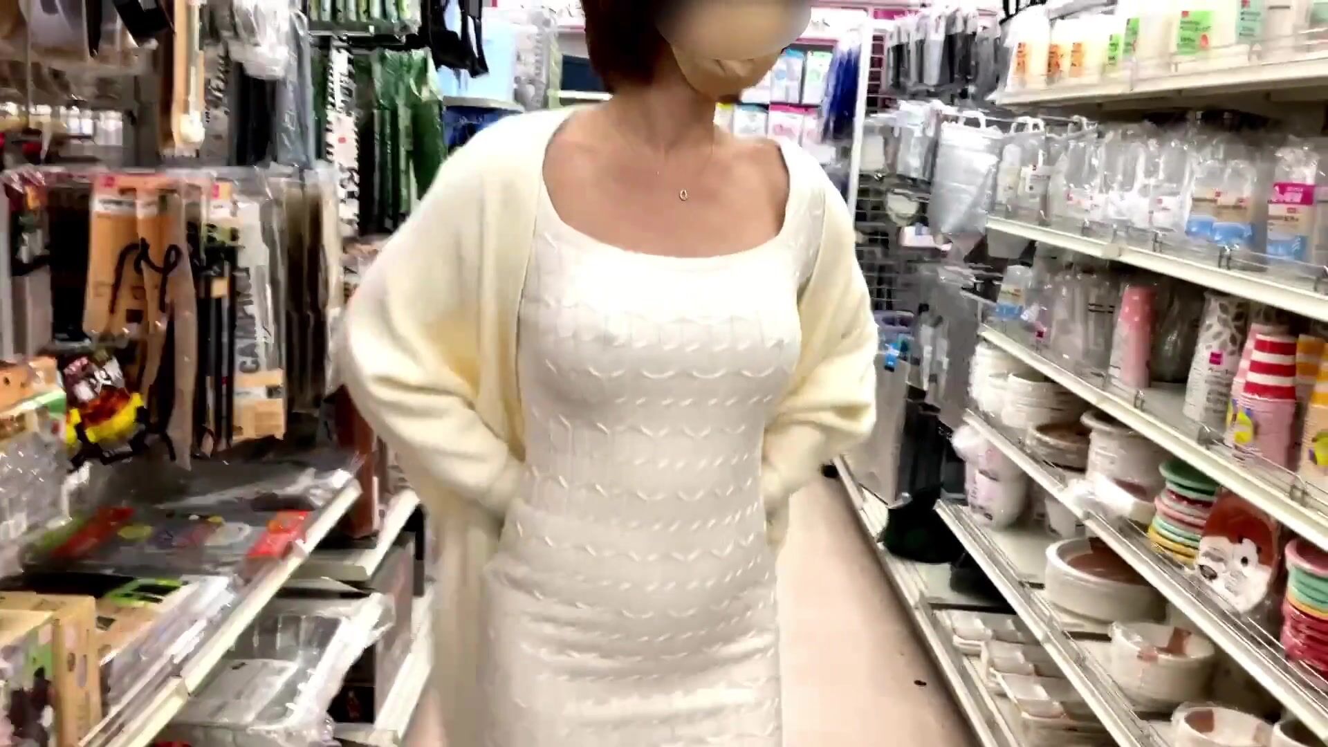 『素人個人撮影』巨乳熟女のノーブラ散歩♡店中では商品棚の隙間からジロジロ視姦され大興奮♥/japanese/hentai/asian/milf/step mom/big tits/変態/日本人/露出