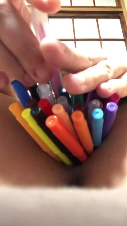 マンコにペン挿入