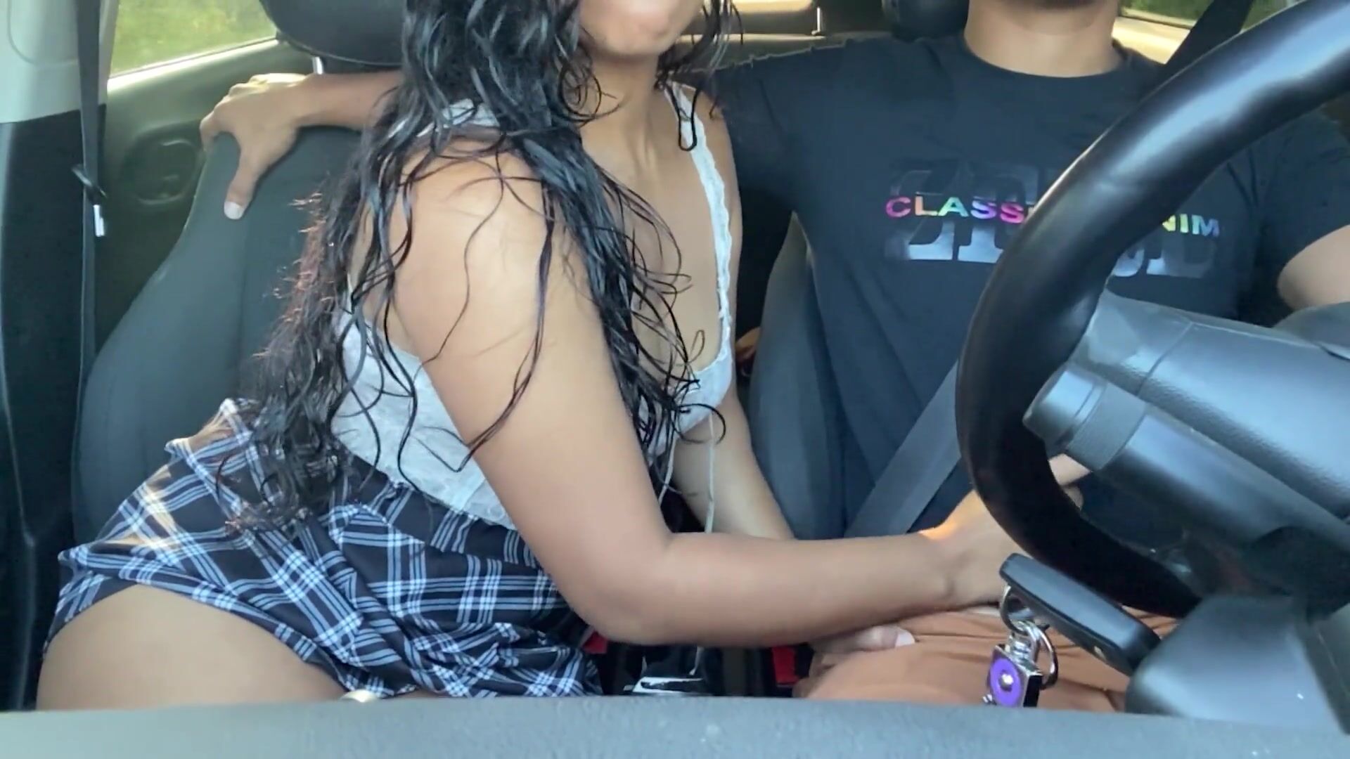 Horny passenger gets into Uber without panties and driver can't resist her