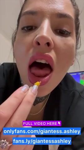 Giantess gamer Ashley has fun with a tiny guy who annoys her. VORE