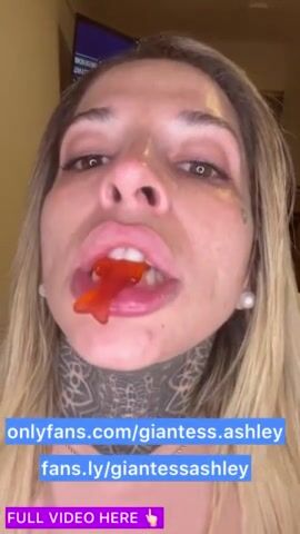 Your giantess Ashley swallows whole gummy snakes