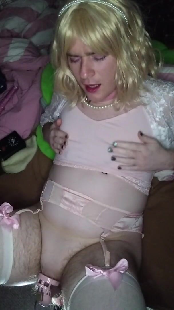 Sissy in chastity cums HANDSFREE through the panties