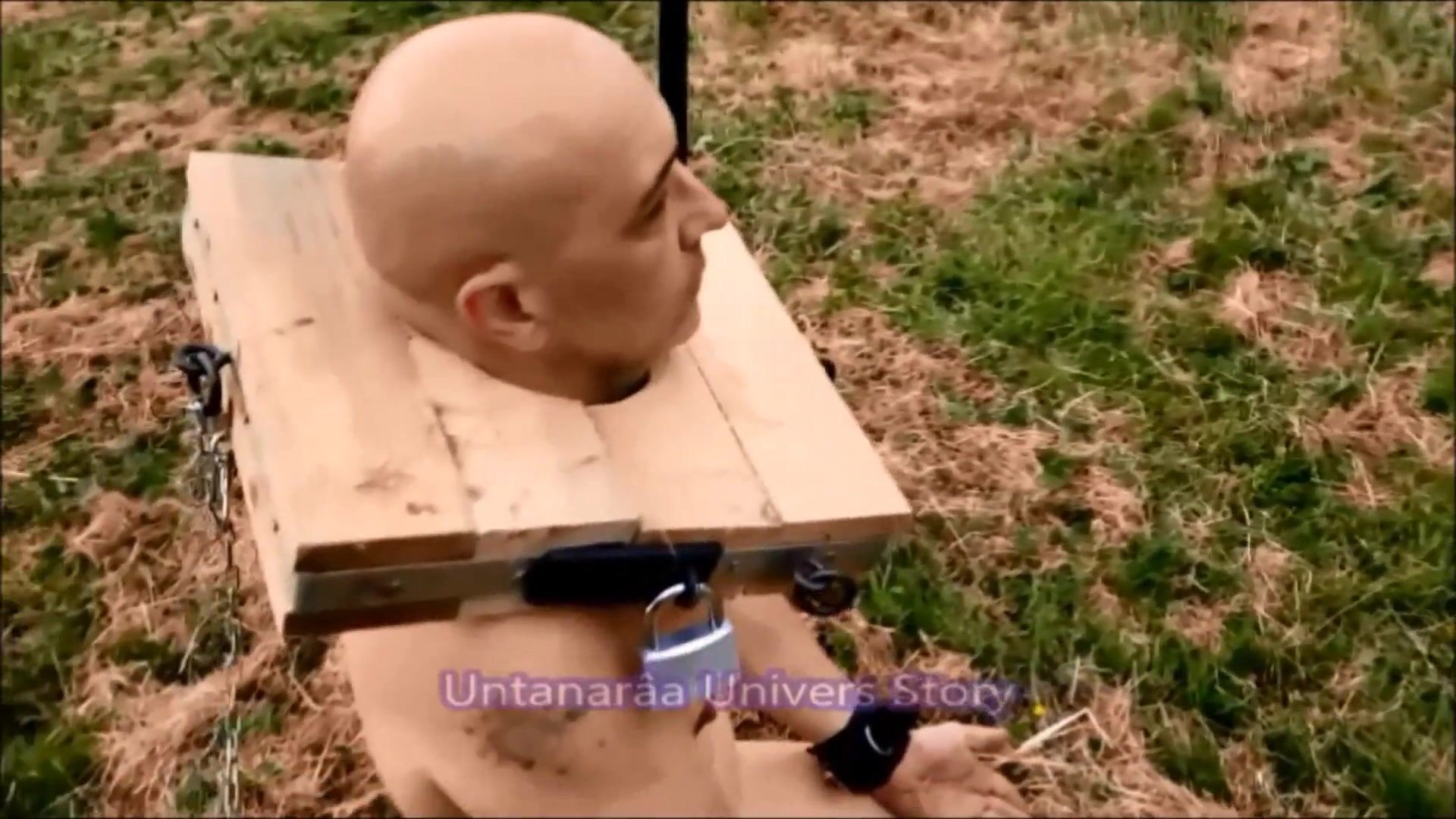 VOST engl - This naked and chaste inferior is tied up in the garden.