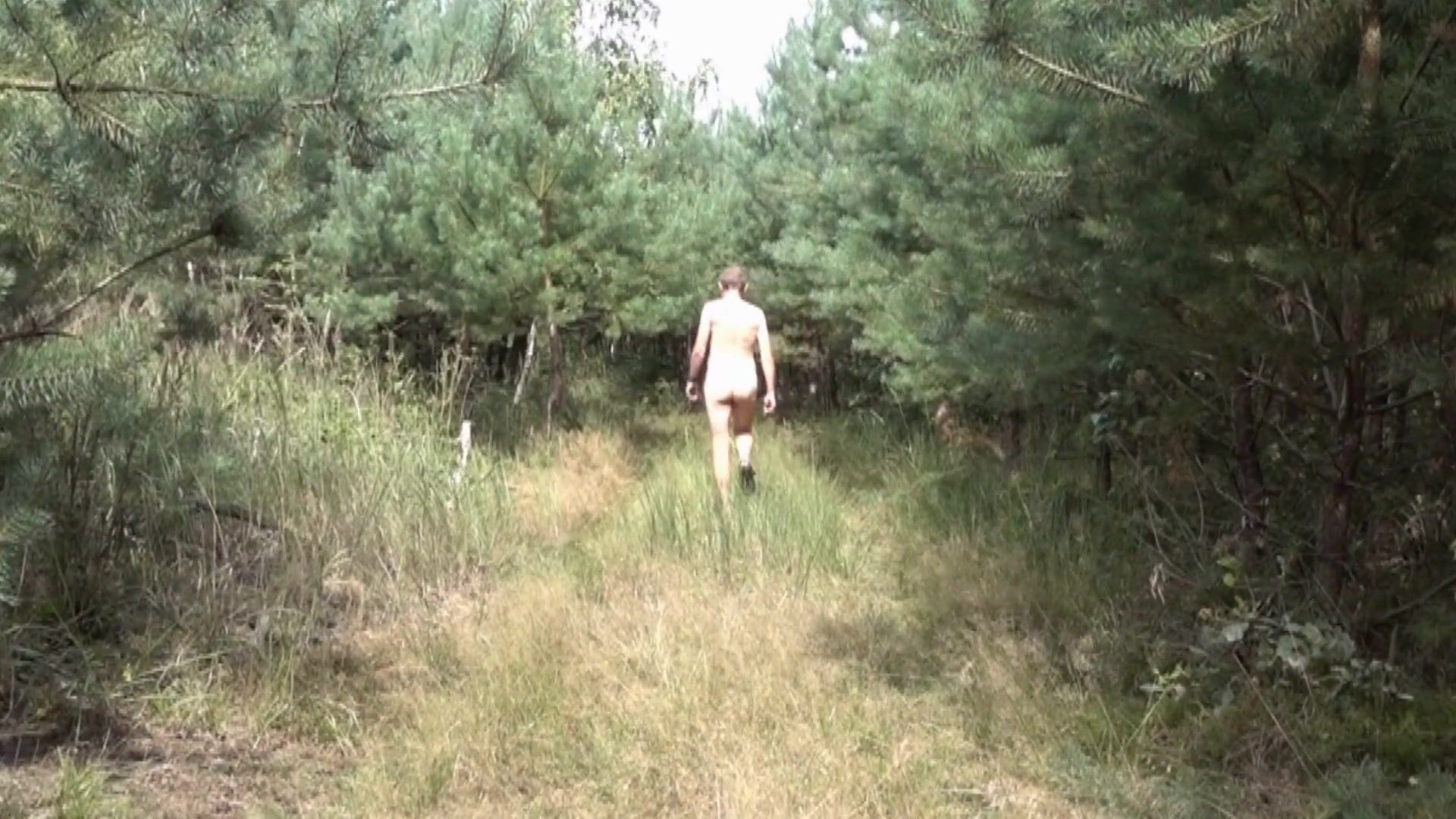 Walking naked in woods enclosed in chastity cage