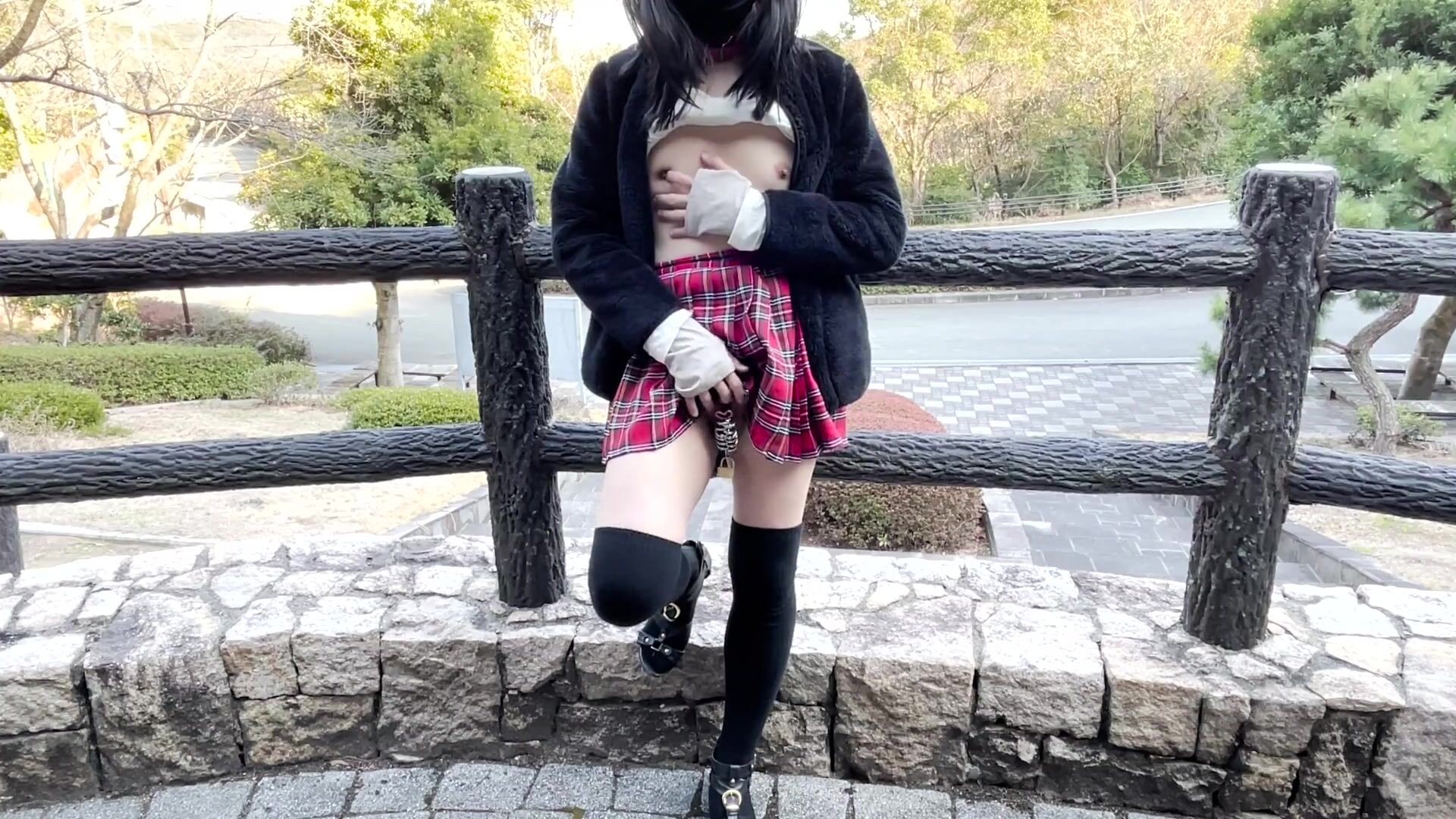 [Crossdresser] Naked exposure from no bra no panties in the park