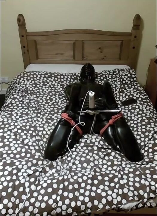 Latex clad selfbondage hogtied orgasm