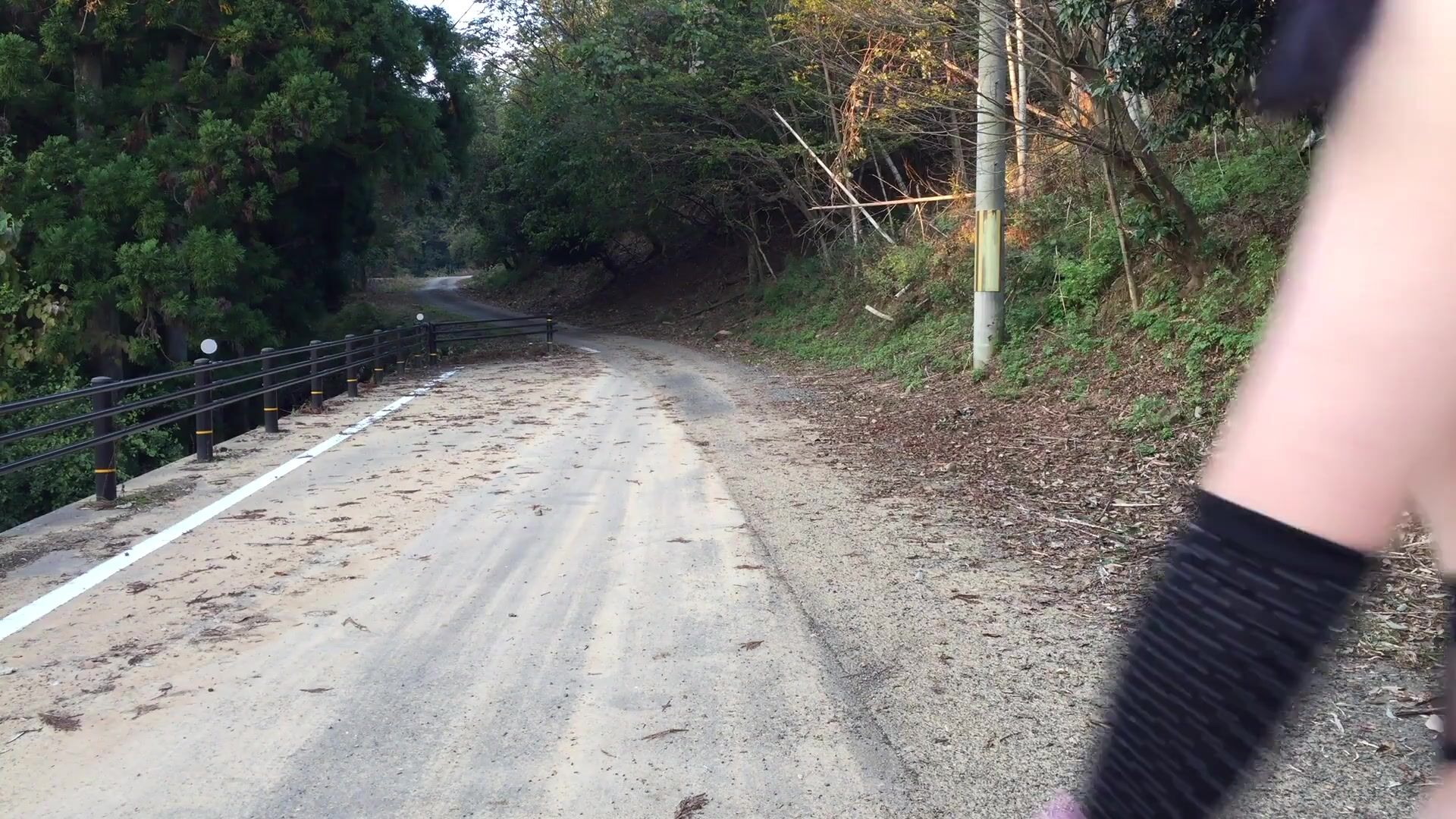 Walking in a large park wearing body stockings and a collar, half-naked.