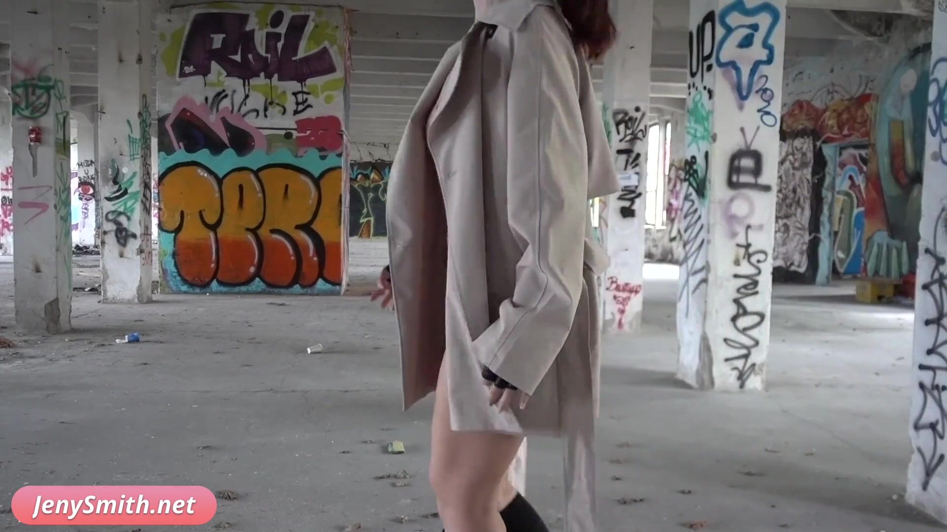 Stealth Mission. Jeny Smith enters an abandoned building naked