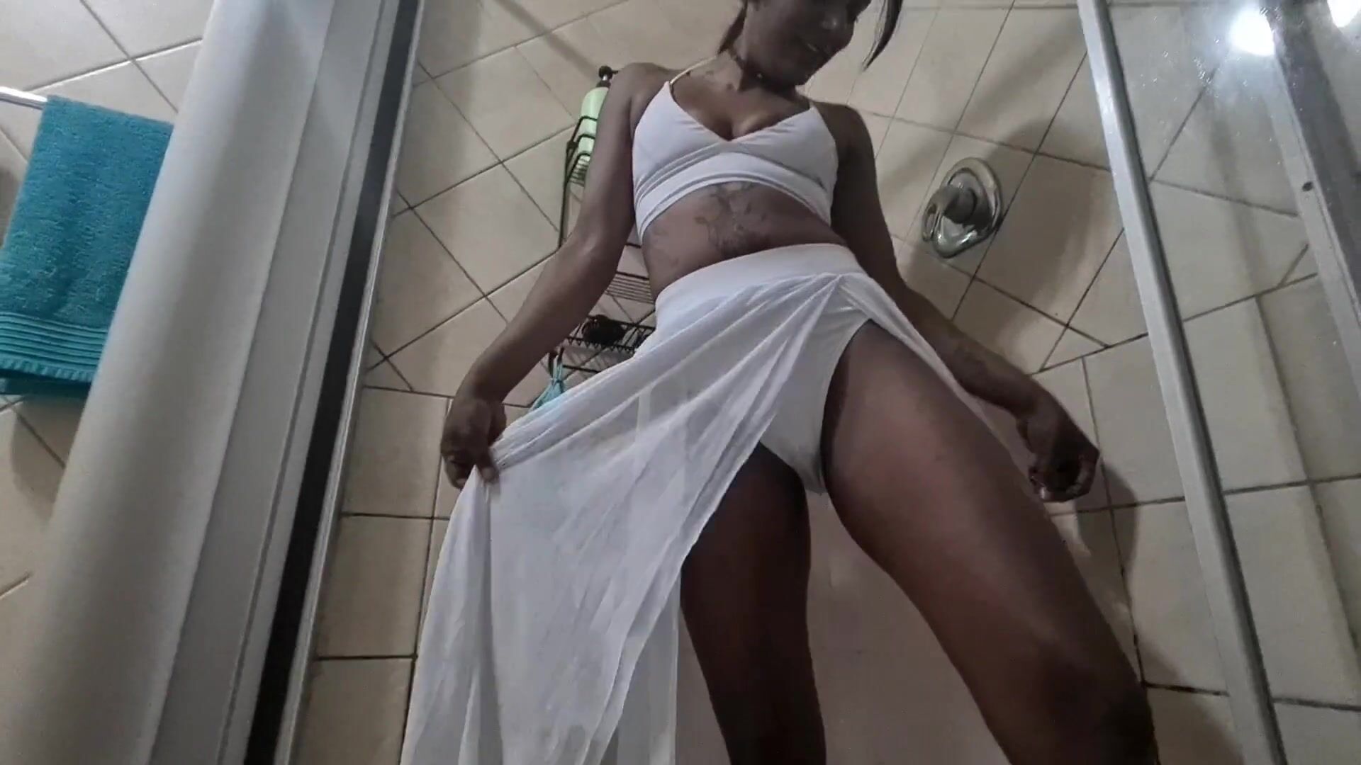 Pervert! Piss on and piss off! BBW Milf pantyhose encased take a shower after pissing and drink piss