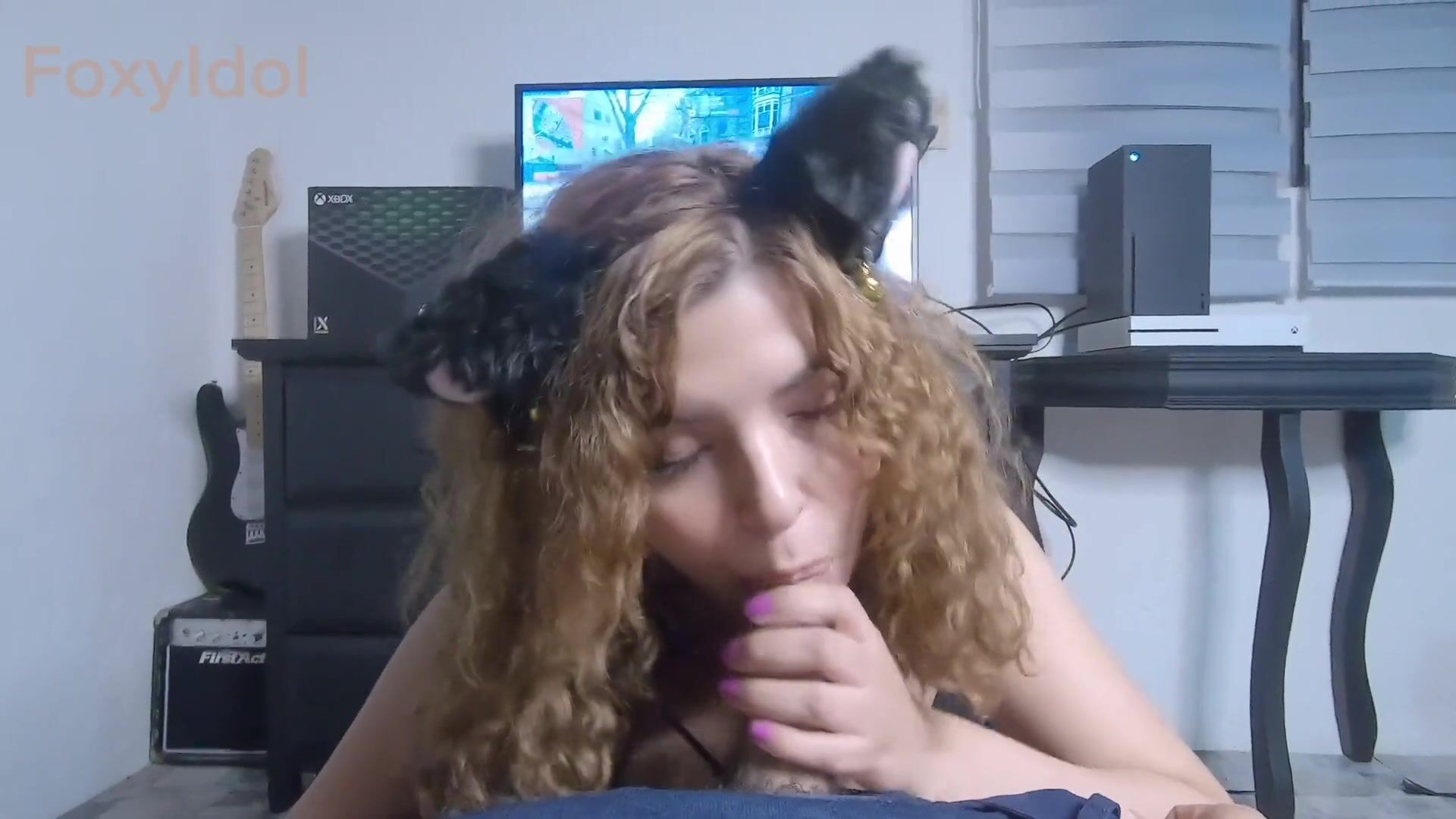my girlfriend interrupts my video game night so she can play with my big cock!