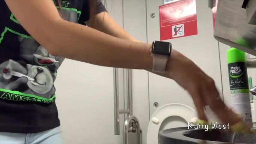 Extreme on plane. Teen girl took off her panties and pee in public