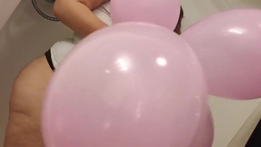HD LOONER Fuck Bunny plays with her big balloons! +100 Balloons B2P Suck Fucked&Pussy stuffed to cum