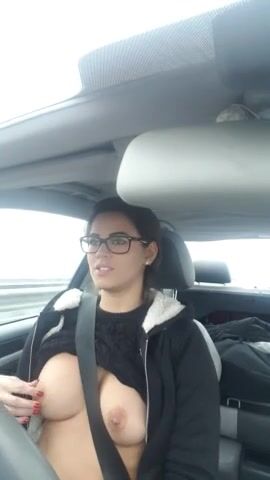 Teen piercing nipple Flash on the road - Flash en voiture by Vic Alouqua