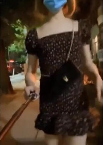 walking and flashing in the streets - sexy girlfriend leolulu